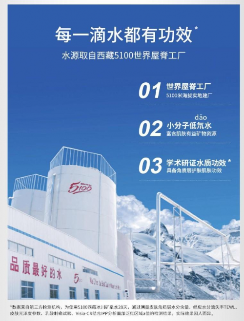 5100极地冰泉秉承“细胞喝水内外兼修”的产品理念,专注于为皮肤提供高效的角质层细胞功效护肤产品。根据5100极地冰泉与西安交通大学合作的研究论文,《冰川低氘水对皮肤长效保湿与舒缓修护的功效》,5100冰川低氘水对皮肤角质层细胞具有显著的舒缓和修护效果。