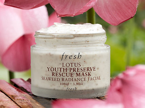 fresh馥蕾诗莲花青春面膜,丰盈的质地包裹着轻柔的去角质颗粒,蕴含莲花萃取物[*5]在内的7种护肤成分[*6],能帮助肌肤一扫倦容,通透匀亮,重焕亮彩。