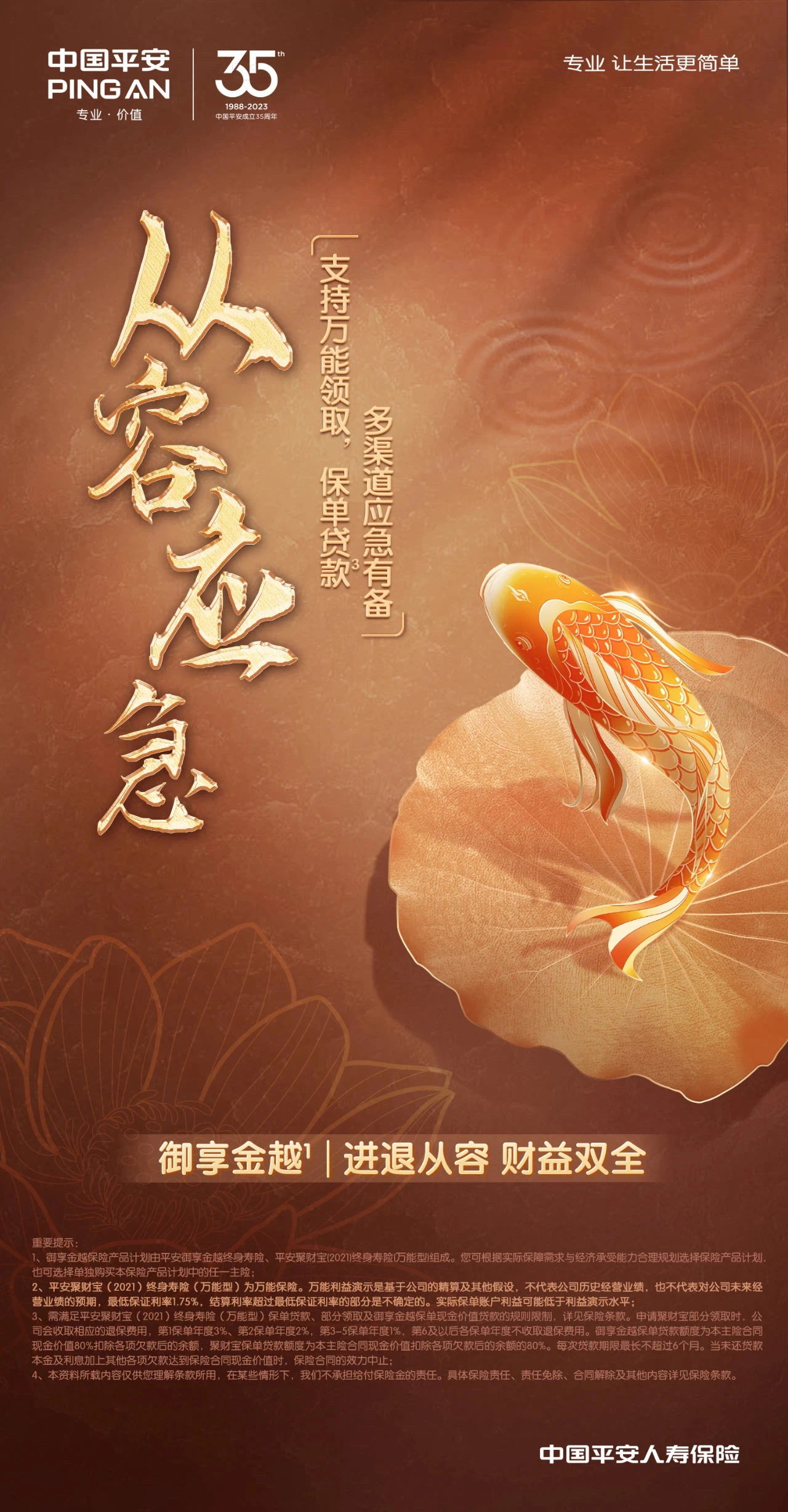 服务民生保障和经济社会发展是保险的天然使命,也是保险业迈向高质量发展的应有之义。平安御享金越终身寿险保险产品计划、平安御享金越终身寿险(分红型)保险产品计划,融财富储备、增长和传承于一体,帮助客户在守住确定性的同时,兼顾财富的成长,享受时间的馈赠。平安人寿表示,未来,公司将继续坚守金融为民初心,立足消费者需求,为客户提供“省心、省时、又省钱”的产品和服务,承托万家幸福平安。