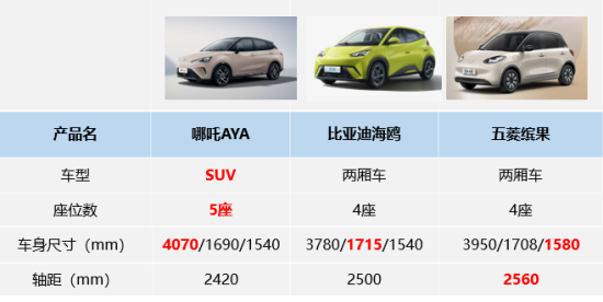 空间PK:哪吒AYA五座大空间、4070mm越级尺寸,满足更多场景出行需求