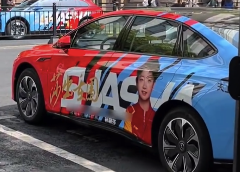 4月23日,上海车展在国家会展中心开幕,不少网友在上海街头拍到了印有孙颖莎头像的痛车,还有为孙颖莎发起的专属活动,粉丝们听到消息也都慕名而来为其打call。据悉,该车企还买下了孙颖莎“应援曲”的版权,《kiss shy》歌曲谐音梗,kiss kiss莎莎的旋律上头洗脑。网友:真的用实力在宠孙颖莎了!