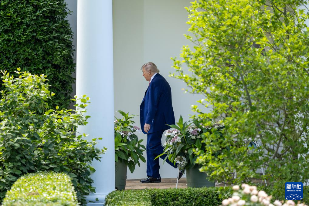 5月23日,在华盛顿白宫,美国总统特朗普走向南草坪准备登机。新华社记者 胡友松 摄