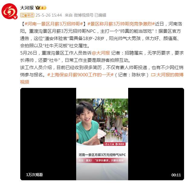 河南一景区月薪3万招帅哥NPC 颜值与社交并重