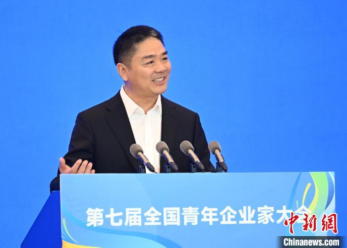 5月27日,京东集团董事局主席刘强东作主旨演讲。中新社记者 王刚 摄