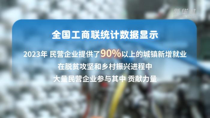 ■全国工商联统计数据显示,2023年,民营企业提供了90%以上的城镇新增就业。在脱贫攻坚和乡村振兴进程中,大量民营企业参与其中、贡献力量。