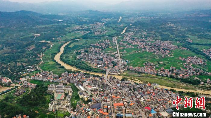 近日,航拍广西梧州市苍梧县沙头镇,镇区与周边乡村连为一体。黎杰源 摄