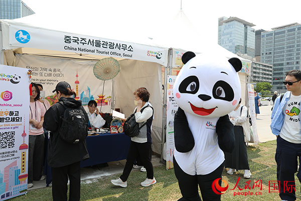 中国驻首尔旅游办事处在活动现场的展位。人民网记者 莽九晨摄