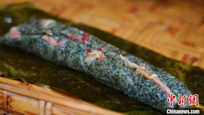图为以草木灰染色的傣家灰粽呈灰黑色。赵欢欢 摄