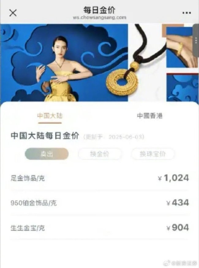 6月2日,国际金价大幅走高,现货黄金涨2.8%,报3380.81美元/盎司;COMEX黄金期货涨2.74%,报3406.40美元/盎司。6月3日,国内金饰价格跟涨。周生生足金饰品标价1024元/克,较前一日1004元/克的价格上涨20元/克,2天上涨26元。