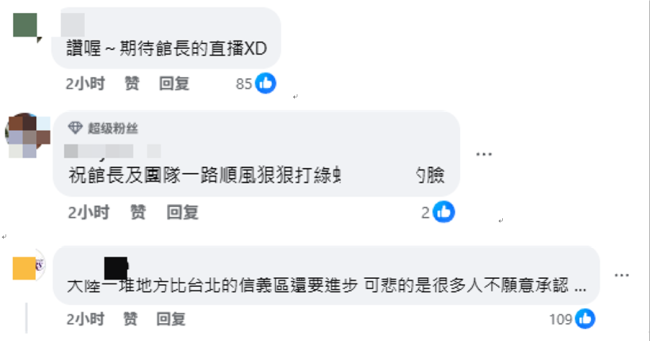 陈之汉在脸书上发图文表示其台胞证已经拿到,有岛内网民留言期待他此次在大陆进行直播旅游,“赞喔~期待馆长的直播”“祝馆长及团队一路顺风,狠狠打绿营的脸”“大陆的一堆地方比台北的信义区还要进步,可悲的是很多人不愿意承认……”