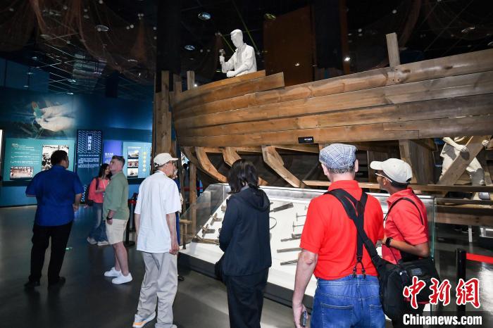 6月8日,海南陵水,海南疍家博物馆展出的疍家人造船场景吸引参观者。中新社记者 骆云飞 摄
