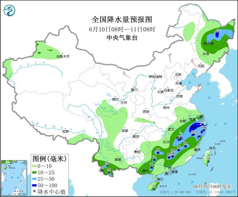 中央气象台预计,10日,华东、华南等地仍有中到大雨,局地暴雨天气。11-12日,降雨将明显减弱。未来三天,东北地区、内蒙古等地多阵雨或雷阵雨,黑龙江、吉林中北部、内蒙古中东部、河北北部等地有中到大雨,局地暴雨,并伴有雷暴大风等强对流天气。