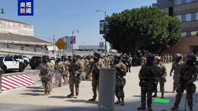 荷枪实弹、身穿迷彩服的国民警卫队队员已经在现场部署。根据官方消息,至少有300名国民警卫队队员抵达洛杉矶。抗议者要求国民警卫队离开这座城市,认为派兵会导致冲突升级。