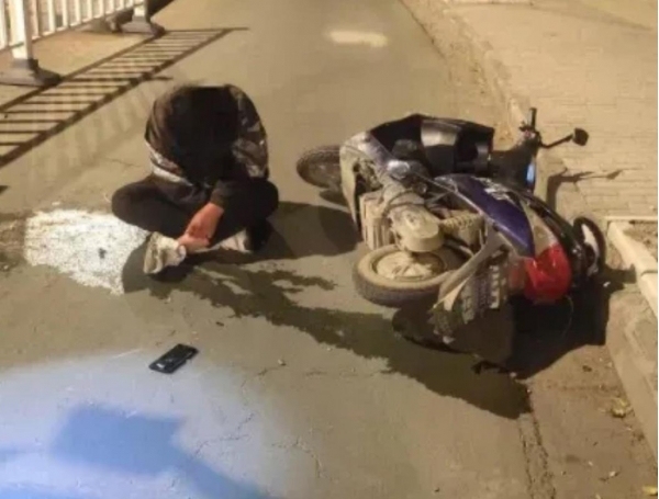 下午6点多,在北京市顺义区某十字路口的草坪上,一名男子瘫坐在哪里,久久未能起身。横在马路中间的摩托车已经被撞的粉碎。路中间还躺着一只鞋子,显得格外突兀。