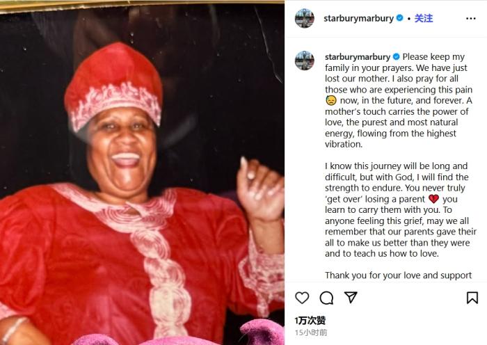 马布里写道:“请为我的家人祈祷,我们刚刚失去了母亲。我也为所有正在经历这种痛苦的人们祈祷,无论是现在、将来,还是永远。母亲的抚摸蕴含着爱的力量,那是最纯粹、最自然的能量。”