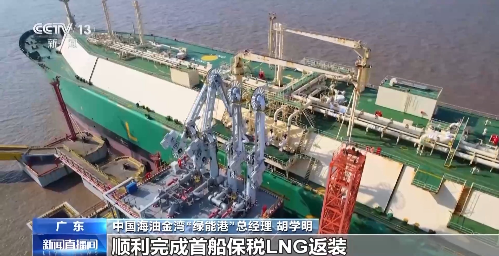 中国海油金湾“绿能港”总经理 胡学明:我们提前制定了保供方案,打通“绿色通道”,顺利完成首船保税LNG返装。同时,稳步推进二期项目试生产,持续增强保供能力。