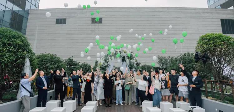 特别策划的创意求婚环节,以别出心裁的方式诠释了爱的承诺,为现场情侣提供了灵感,也赢得了阵阵掌声与感动。活动在温馨浪漫的集体气球放飞仪式中达到高潮,漫天飞舞的气球承载着新人们对未来的美好愿景,为这场婚礼秀画上了圆满的句点。