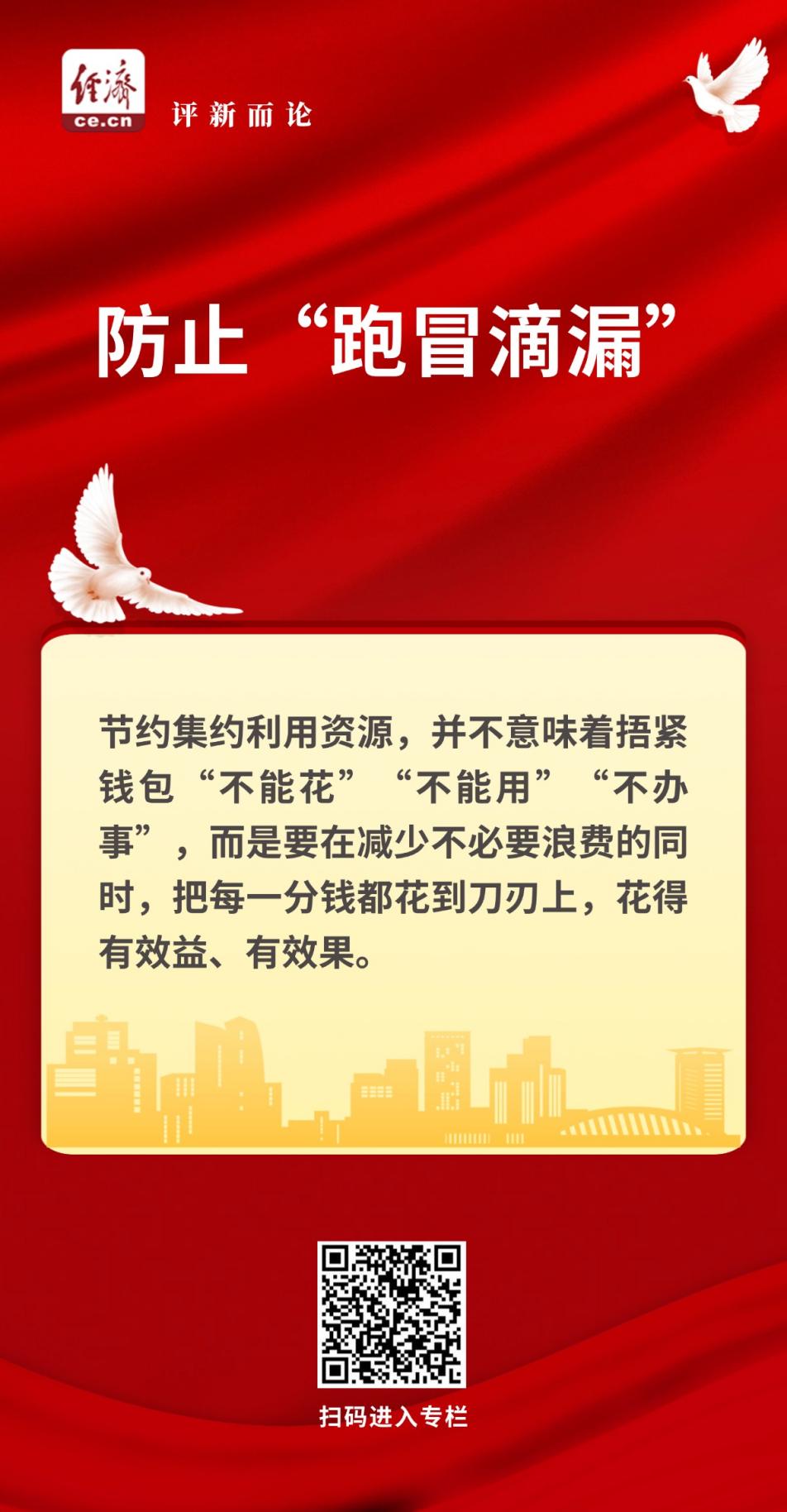 当然,节约集约利用资源,并不意味着捂紧钱包“不能花”“不能用”“不办事”,而是要在减少不必要浪费的同时,把每一分钱都花到刀刃上,花得有效益、有效果。