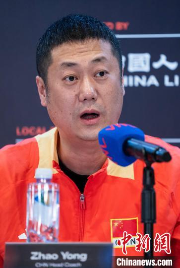 图为中国女排主教练赵勇回答记者提问。中新网记者 侯宇 摄