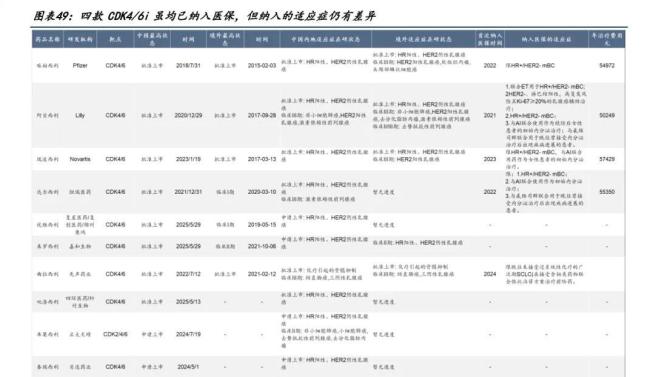 目前,国产CDK4/6抑制剂已获批的适应症都是晚期乳腺癌,竞争力仍弱于外资品种。进医保只是其中一环,未来适应症拓展才是竞争的关键。