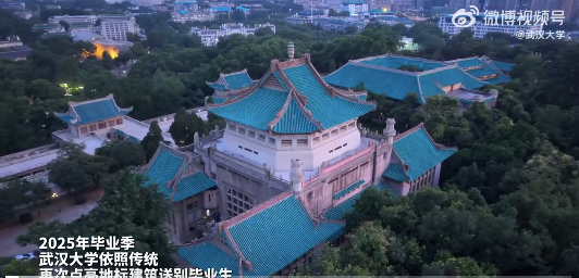 又是一年毕业季,昨夜,武汉大学再次点亮地标建筑送别毕业生:愿2025届毕业生脚下有路,归途有光。