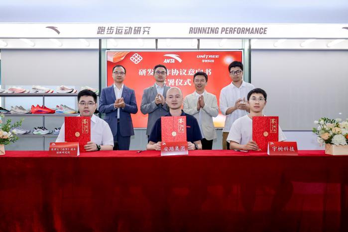 此外,安踏集团还联合宇树科技和香港理工大学南京技术创新研究院,就“人形机器人在运动科学领域的研发应用”建立战略合作关系并举行签约仪式,三方将在人形机器人应用于运动科学和装备测试、运动鞋服行业全价值链场景、以及机器人运动装备等方面共同展开研究。