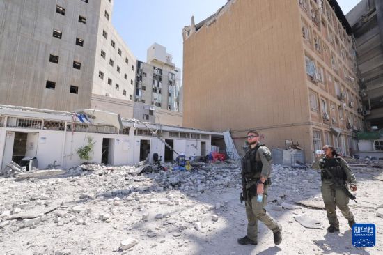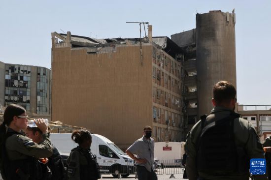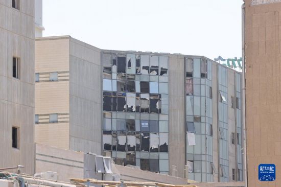 这是6月19日在以色列南部贝尔谢巴拍摄的在导弹袭击中受损的医学中心。新华社/基尼图片社