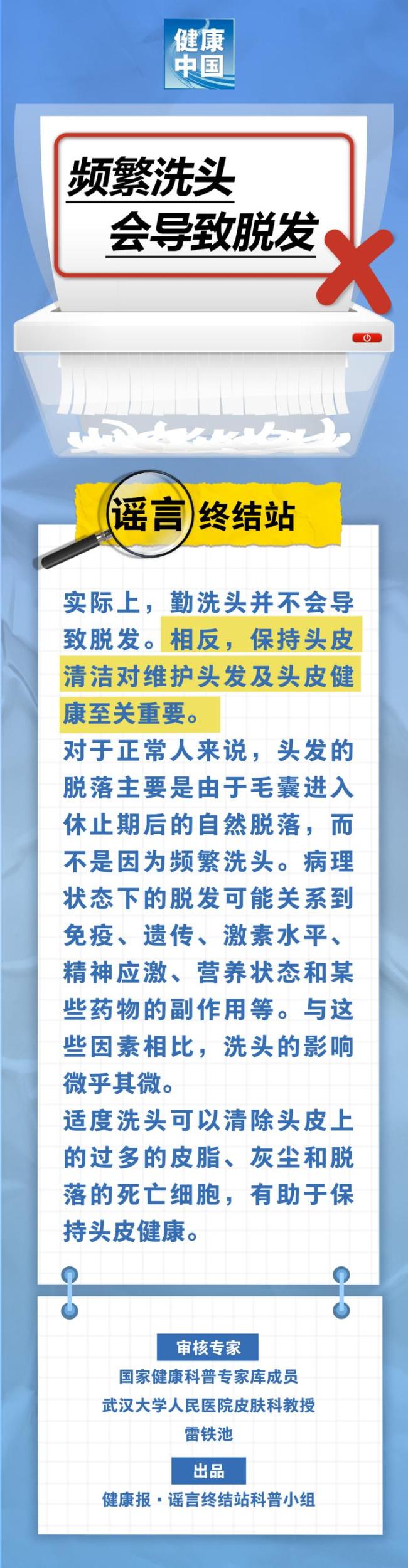 卫健委辟谣频繁洗头会导致脱发 硬核打假