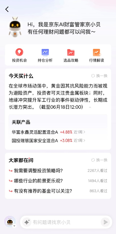 京东金融相关负责人透露,未来将持续深化AI技术与金融场景融合,迭代大模型能力、拓展服务边界,重塑财富管理模式,为用户带来更精准、智能的财富管理体验。