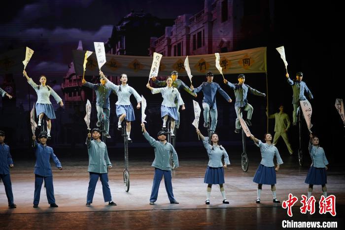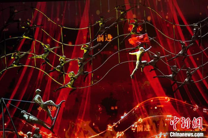 6月19日晚,为纪念中国人民抗日战争暨世界反法西斯战争胜利80周年,大型杂技舞台剧《聂耳》开启全国巡演,首站演出在昆明举行,未来将在江西、福建、江苏、河北等地演出。中新社记者 刘冉阳 摄