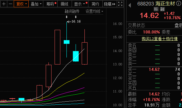 6月12、13、16日,海正生材的股价连续大涨,在调整两日后,今日该股再度冲高。截至6月19日收盘,海正生材涨10.76%,报14.62元/股。近6个交易日累计上涨超40%。