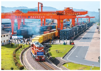 中欧班列是中国同世界开展互联互通合作的缩影。不论是平稳运行的中老铁路、西部陆海新通道班列,还是建设中的中吉乌铁路,一条条物流新通道提高了跨境物流效率,促进了人员交流与贸易往来,深化了产业协同和价值链融合,带动相关国家产业转型升级,为当地民众带来实实在在的获得感。
