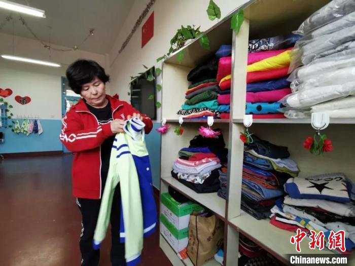 中新网乌鲁木齐6月25日电 (王小军)在新疆博尔塔拉蒙古自治州温泉县城镇小学一间47平方米的房间里,堆着叠放整齐的衣物,墙上贴满了孩子们的笑脸合影和手工作品。这间被师生们亲切称为“石榴籽”爱心屋的小天地,是该校教师吾吉用11年光阴,一点一滴编织起来的校园港湾。