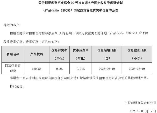 近日,多家头部银行理财公司对部分产品费率进行了调整,而从已调整产品的优惠公告获悉,基本是将产品费率从原来小数点后一位挪至后两位,甚至有的已降至0.01%(年化)。