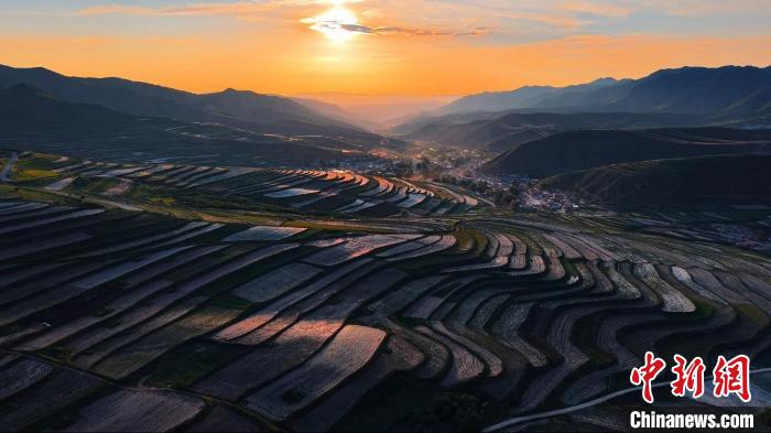 图为落日余晖为梯田镀上光晕。张冬青 摄