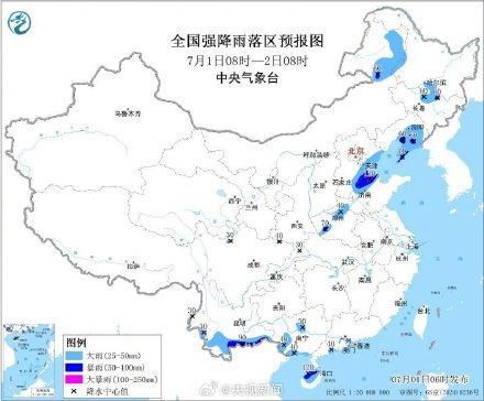暴雨蓝色预警!11省区市有大到暴雨 注意防范强对流天气