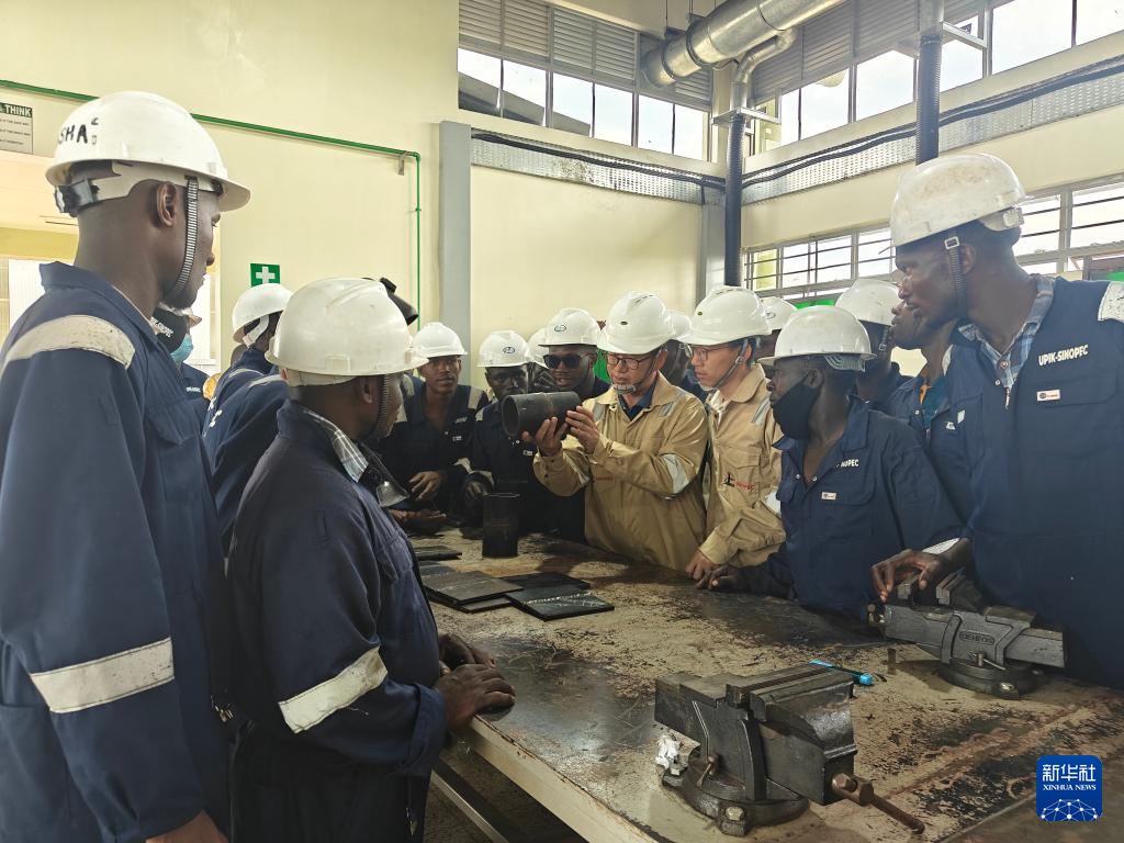 6月16日,在乌干达基贡巴石油学院,中国老师对学员进行针对性辅导。新华社发(中石化供图)