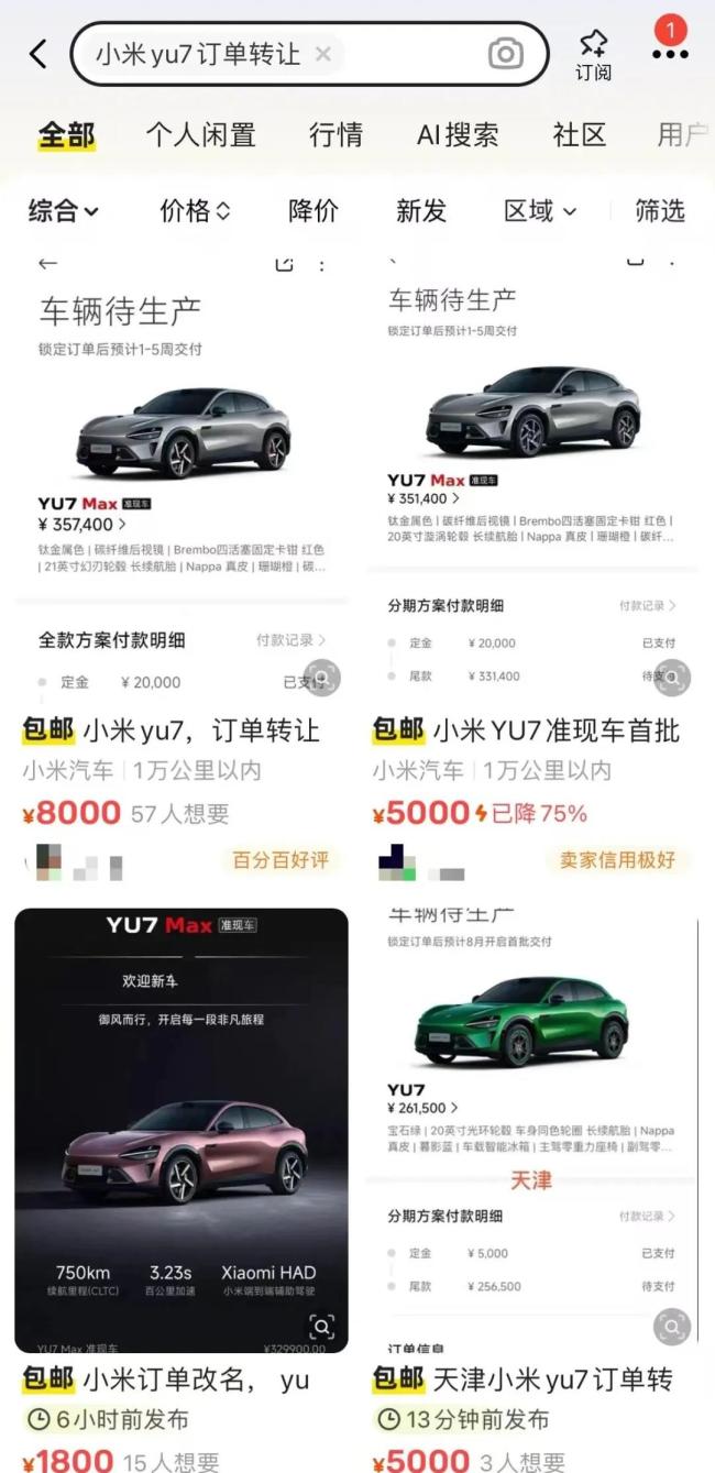 YU7超大订单引发车圈地震:有人报销订金截单,有人怒骂米粉愚忠