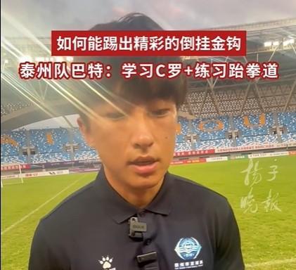 在“苏超”第5轮泰州队对阵徐州队的比赛中,泰州队球员巴特以一记精彩的倒钩破门得分。巴特在接受采访时提到,这个进球可能与他之前练过跆拳道有关,平时他也经常观看C罗等顶级球员的进球视频。