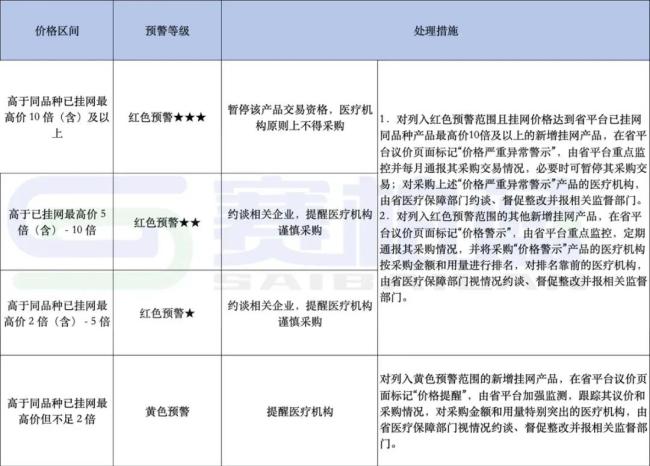 依照江苏省的规定,一个产品的挂网价格高于同品种已挂网最高价2倍(含)-10倍(含)以上的,均属于红色预警范畴,只是根据高出的价格区间,划分为红一星、红二星、红三星三种情况。