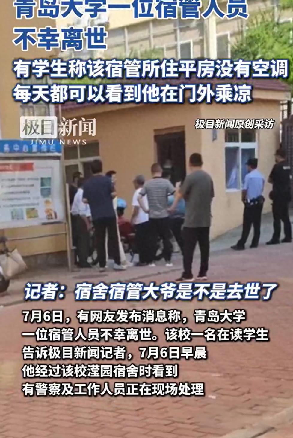 青岛大学宿舍 宿管大爷去世引哀悼!山东青岛大学滢园一位宿管大爷去世,多位网友发帖哀悼。7日,青岛大学发布情况说明,初步排除刑事案件可能,具体原因正在调查中。
