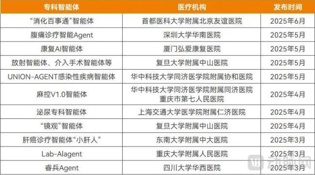 近期推出的部分专科专病智能体,资料来源:公开信息、访谈