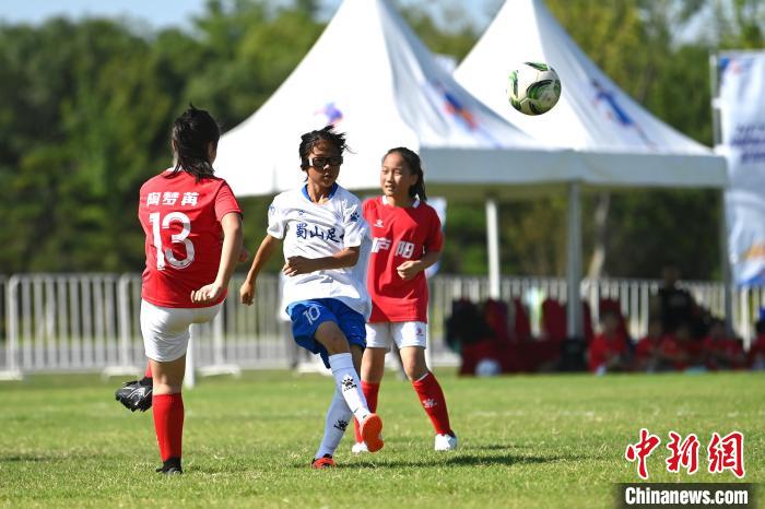 图为少年球员在比赛中拼抢。中新社记者 韩苏原 摄