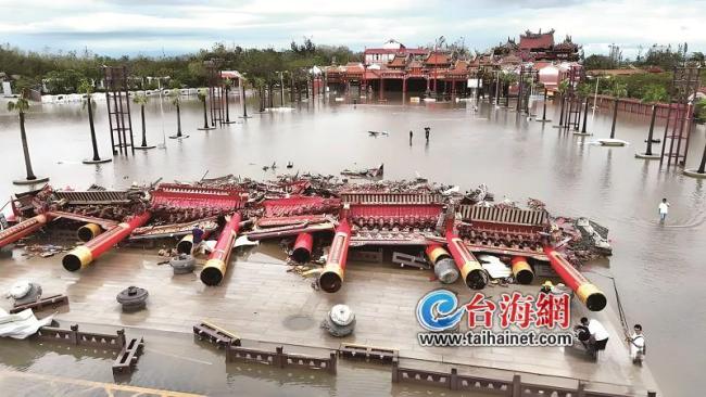 全台最大王爷庙南鲲鯓代天府的一座高14米、宽30米的牌楼因强风倒塌,损失上亿元新台币。庙方总干事侯贤名表示,未来将改用钢筋水泥重建牌楼。南鲲鯓代天府不仅是全台最大王爷庙,也是台南市沿海重要旅游景点,此次风灾对其影响巨大。