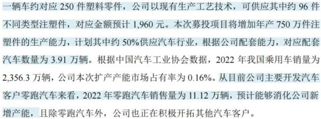 另外,公司注塑件量产客户仅有芜湖长鹏汽车零部件有限公司(零跑供应商)一家,公司虽然取得了零跑汽车的项目定点,但尚未签订正式供货合同。