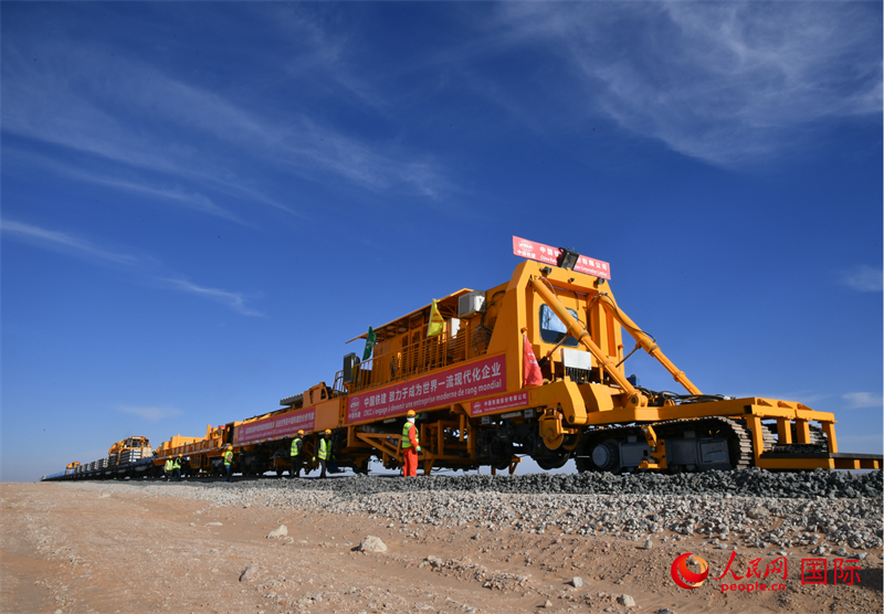 中企承建非洲首条沙漠重载铁路优先段轨道铺通