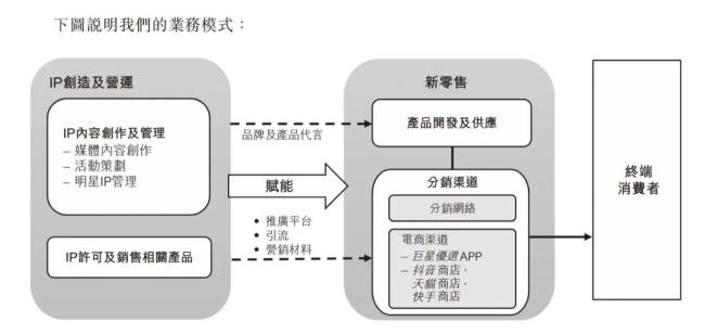 巨星传奇通过周杰伦和刘畊宏等明星的综艺节目、社交媒体来培育IP,与此同时,开发新零售产品,借助明星的IP热度来进行销售。