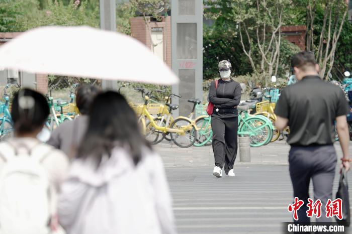 7月14日,河南郑州市民“全副武装”出行。中新社记者 李超庆 摄