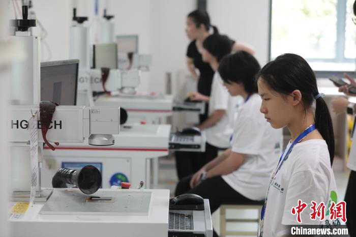 7月14日,海外校友子女走进华中科技大学学习激光技术。张畅 摄