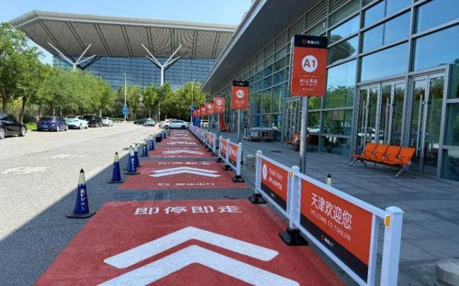 为方便旅客乘车,天津滨海机场将网约车上车点设在社会停车场交通中心A岛东侧。从2号航站楼B2层地下交通中心可前往A岛上车点,国际航班旅客则可从1号航站楼行至2号航站楼后沿此路径乘车。上车点设有8个带编号的专用泊位,车道内划有网约车接客车道。此外,上车点还配置了人工服务岗,提供引导服务,并设有旅客休息座椅、医药箱等便民设施,以提升旅客出行体验。